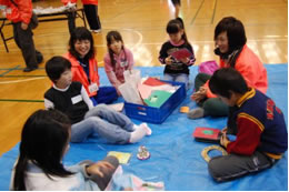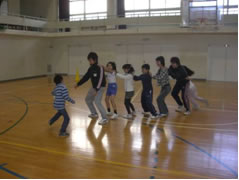 むかでゲームや長なわ、ヘルプタグなどを行いました。参加者は小学生3年生から6年生までおり、身体 の大きさも個人差があるため、性別や年齢、体格差などが影響しないようにルールを少しずつ改良して実施しました。