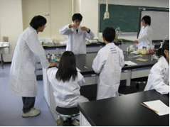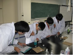 薬品を使って、いろいろな色の炎が出ることを実験で確かめた後、自分の好きな色の炎が出るろうそく作りをしてもらいました。