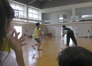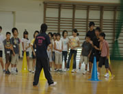 しまわたりおに,リレー,天下をしました。当日は2年生が集中講義の関係で少なく,急遽1年生がスタッフとして参加しましたが,若い分だけ子どもの気持ちが分かるのか,すぐにうちとけて子どもたちと仲良く活動していました。