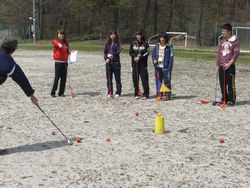 2日目の午前中は天気にも恵まれ,各グループで宿泊先の青少年交流の家でのプログラムを選んで体験しました。三瓶山の自然に浸るオリエンテーリング, 施設を利用したスナッグゴルフやニュースポーツを楽しみました。自主的にそして協力して活動を運営することで,さらに協調性や仲間意識を培うことができました。