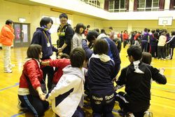 参加者全員でレクリエーションを行いました。学生スタッフが,ルール説明をユニークで分かりやすいものになるよう趣向を凝らしました。他のスタッフも,みんなで場を盛り上げようとする配慮を行う中で少しずつ緊張もほぐれ,誰とでも楽しく過ごすことができました。“仲間”を実感した1時間となりました。