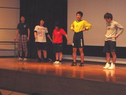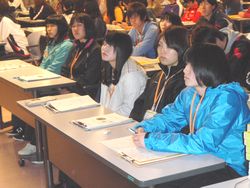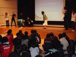 | 学生スタッフが,実体験をもとにした基礎体験活動の一連の流れを劇にして説明しました。これにより,活動の登録の手続きの仕方や事前・事後指導のあり方,実際の活動における成果と課題などを楽しく,分かりやすく理解することができました。 |