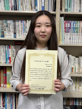 本教職大学院2年生の升谷有里さん(指導教員:下村岳人准教授)が、日本科学教育学会2025年度第2回研究会における研究発表において、「ベストプレゼンテーション賞」を受賞しました。本賞は、科学教育分野において優れた研究成果を発表した若手研究者に授与されるものであり、研究内容の独創性、学術的意義、発表の明瞭さなどが総合的に評価されます。