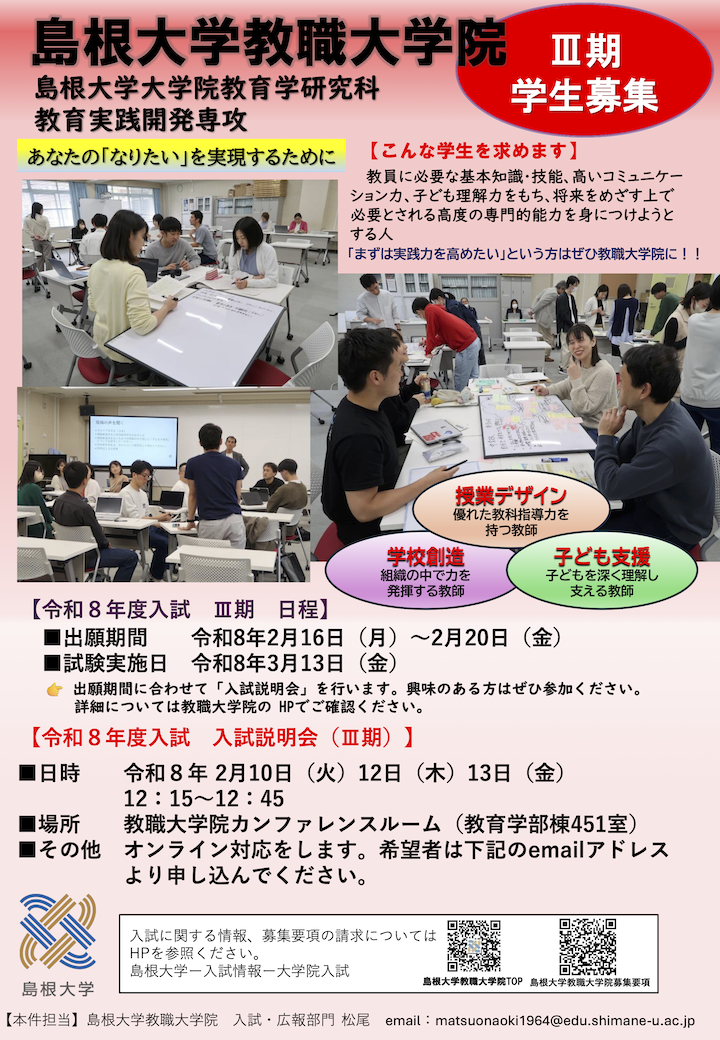 島根大学教職大学院入試(2026年4月入学)説明会(Ⅲ期)について